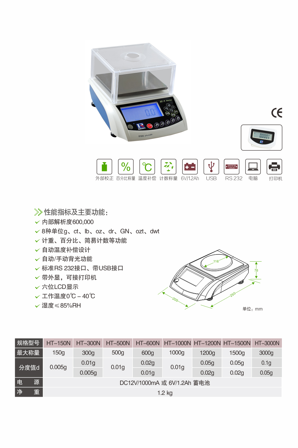 HT-N密封光學天平秤標準規格: